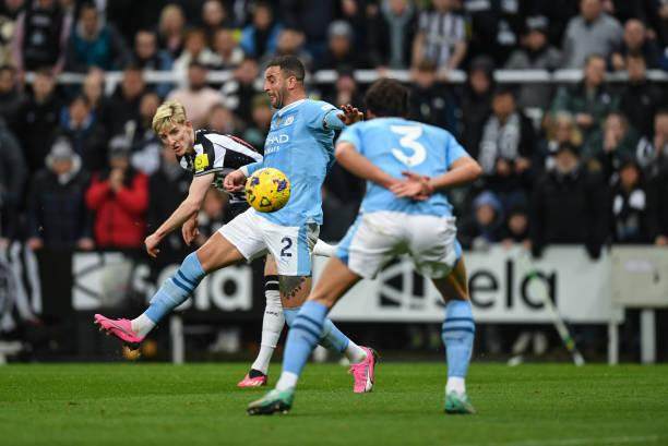除了比赛进程跌宕起伏,双方的5个进球也各个精彩!贝尔纳多·席尔瓦在第26分钟首开纪录:他在禁区内接沃克的传中,在侧身背对球门的情况下将皮球磕进球门。而纽卡这边的应对更胜一筹:曼城1比0的比分持续了仅仅10分钟,伊萨克和戈登就在不到两分钟的时间里各进一球,直接将比分逆转为2比1!